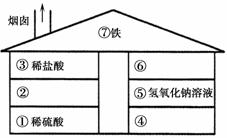 你玩過“蓋房子”的游戲嗎?如右圖所示,游戲規(guī)則是根據(jù)“上下相鄰的物質(zhì)間均可發(fā)生化學(xué)反應(yīng),且左邊上下相鄰物質(zhì)間反應(yīng)均有氣體產(chǎn)生”來堆物質(zhì)。根據(jù)上述游戲規(guī)則適合圖中②、④、⑥三處位置的物質(zhì)是