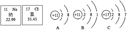 下面是鈉元素和氯元素在元素周期表中的信息和3種粒子的結(jié)構(gòu)示意圖.請回答下列問題: