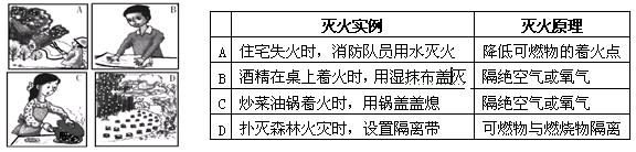 ,給人民造成重大損失。應(yīng)用化學(xué)知識(shí)能有效地預(yù)防和控制火災(zāi)。下面對(duì)圖中滅火實(shí)例滅火原理解釋不正確的是