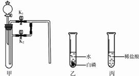 (1)若甲中盛有二氧化錳,連接甲乙裝置,關(guān)閉K1打開K2,從分液漏斗向甲中加入適量雙氧水,關(guān)閉分液漏斗活塞,觀察到乙中導管口有氣泡冒出,白磷不燃燒;關(guān)閉K2打開K1,則乙中的現(xiàn)象是