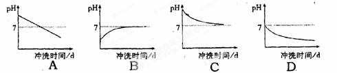 我國(guó)土壤的分布情況大體是“南酸北堿”,南方農(nóng)民引淡水沖洗以降低其酸性,在下圖中符合沖洗過(guò)程酸堿性變化的曲線是( )