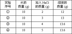 20℃時,NaCl溶解于水的實(shí)驗(yàn)數(shù)據(jù)如下表。則下