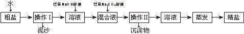 (3)粗鹽提純時,操作I的名稱為 。