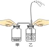 如右圖所示。先在乙中盛放約3/4容積的水(水中加2