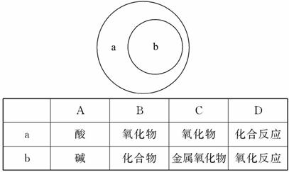 概念之間具有并列、包含、交叉等關(guān)系。如圖表示a、b概念之間的包含關(guān)系,下表選項(xiàng)中所列概念之間的關(guān)系,符合圖中所示包含關(guān)系的是( )