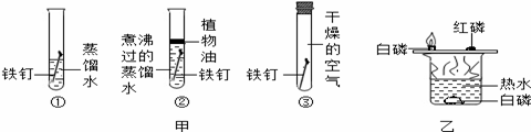 B.甲圖中①③對比可探究鐵的銹蝕與水是否有關