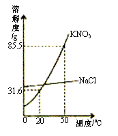。1)查閱KNO3和NaCl的溶解度曲線,如圖。從圖中可得到的一條信息是 (合理即可)。50℃時(shí),將85.5g固體藥品溶于100g水中,得到的是KNO3的_______(填“飽和”或“不飽和”)溶液。將KNO3提純的方法是 。
