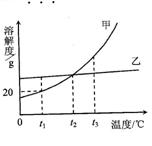 B.將t2℃甲、乙兩種物質(zhì)的飽和溶液升溫至t3℃(溶劑的量不變),兩種溶液中溶質(zhì)的質(zhì)量分?jǐn)?shù)相等