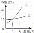 B.t1℃時(shí),甲、乙兩物質(zhì)飽和溶液中溶質(zhì)的質(zhì)量分?jǐn)?shù)均為15%