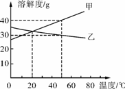 C.20℃時,甲、乙兩種物質(zhì)的溶解度相等