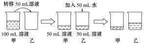 室溫時(shí),對(duì)100 mL氯化鈉飽和溶液作如下操作,最終甲、乙兩燒杯中溶液 ( )