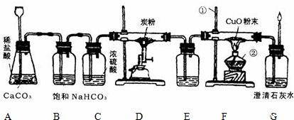 (5)某學生在驗證CuO與CO反應產(chǎn)物時,在裝置E中加入了一種試劑.你認為該試劑是 。