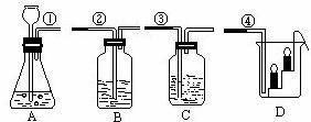 (4)燒杯D中放有燃著的蠟燭如圖所示,當(dāng)將標(biāo)①和④的導(dǎo)管口連接時(shí),D中看到的實(shí)驗(yàn)現(xiàn)象是____________________________________。