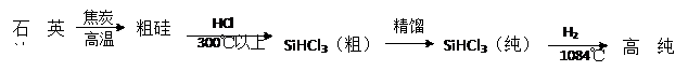 作為推行“低碳經(jīng)濟(jì)”的重要科技進(jìn)步,太陽(yáng)能 光伏發(fā)電成為2010年上海世博會(huì)的“亮點(diǎn)”。太陽(yáng)能光伏發(fā)電最關(guān)鍵的材料是高純硅。三氯甲硅烷(SiHCl3)還原法是當(dāng)前制備高純硅的主要方法。生產(chǎn)流程示意圖如下: