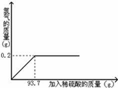 定量的稀硫酸,恰好完全反應(yīng),產(chǎn)生氫氣的質(zhì)量與加入稀硫酸的質(zhì)量關(guān)系如圖所示。