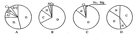 根據(jù)以下A、B、C、D四幅元素含量示意圖,試推測(cè)元素分布領(lǐng)域,將圖下字母序號(hào)填在相應(yīng)位置上。![]()