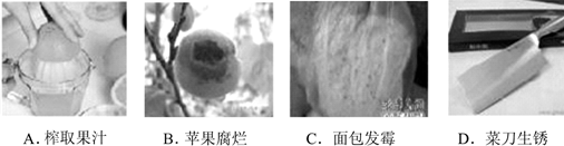 | A.牛奶變酸 | B.蔬菜腐爛 | C.石油氣液化 | D.菜刀生銹 |