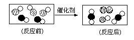 如圖是汽車尾氣中有毒氣體轉(zhuǎn)變?yōu)闊o毒氣體的微觀示意圖,圖中不同的圓球代表不同原子。下列說法錯誤的是![]()