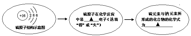 (3)觀察硫原子結(jié)構(gòu)示意圖,在下圖中填空:![]()