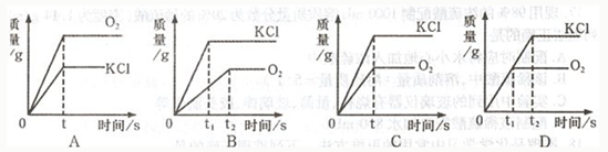 可以用加熱氯酸鉀和二氧化錳混合物的方法在實驗室制取氧氣。下列是反應生成氧氣和氯化鉀的質量與反應時間的關系坐標圖,其中合理的是![]()