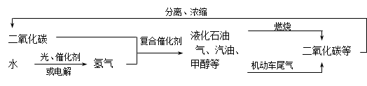 (3)保護(hù)空氣,提倡“低碳”,減少溫室效應(yīng),是我們必須關(guān)注的問(wèn)題?茖W(xué)家正在研究如下圖所示的二氧化碳新的循環(huán)體系。![]()
