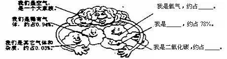 (3分)閱讀以下有關(guān)“空氣成分”的卡通圖,填空:![]()