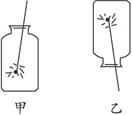 如圖所示,用帶火星的木條分別以甲、乙兩種方式迅速插入,觀察到木條復(fù)燃,且在甲中燃燒比乙中燃燒更旺。![]()