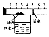 用下圖所示的實驗裝置可以測定空氣中氧氣含量。在一個具有刻度和可以左右滑動的活塞的玻璃管中放入足量的自磷,活塞左端管內(nèi)密封有空氣,右端的管口跟空氣連通。將玻璃容器固定在盛有80℃熱水(恒溫)的燒杯上,進行實驗。試回答:![]()
