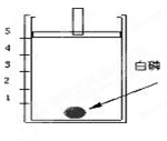 在一個(gè)隔熱效果良好的容器上方安裝一個(gè)可自由上下移動(dòng)的活塞(活塞質(zhì)量忽略不計(jì),起始位置在5刻度處)。加熱容器,使容器溫度達(dá)到80℃(已知白磷燃燒所需的最低溫度為40℃)。
