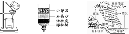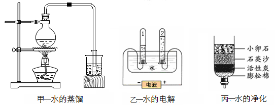 (1)自然界中的水都不是純水,利用沉淀、 、吸附和蒸餾等方法可以?xún)艋?br />(2)甲中的水只發(fā)生了______(填“物理”或“化學(xué)”)變化。
