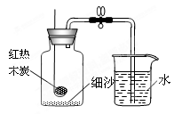 小軍根據(jù)燃燒紅磷測定空氣中氧氣含量的實驗原理,認(rèn)為可用木炭代替紅磷測定空氣中氧氣的含量,并按右圖裝置進(jìn)行實驗。![]()