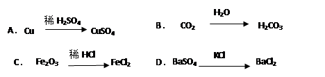 (2011年浙江義烏,18題)下列物質(zhì)間的轉(zhuǎn)化可以實(shí)現(xiàn)的是![]()