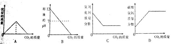 向澄清石灰水中通入過量的CO2,發(fā)生如下反應(yīng):Ca(OH)2 + CO2 = CaCO3↓+ H2O ,CO2 + CaCO3 + H2O = Ca(HCO3)2;Ca(HCO3)2易溶于水。下列圖示正確的是( )![]()