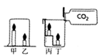 ②往放有燃著的蠟燭丙、丁的燒杯中慢慢倒入二氧化碳。