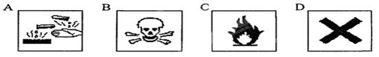 上!11?15”特別重大火災事故發(fā)生,震驚全中國,它警示人們要時刻注意安全。下列幾種消防安全標志中屬于易燃物的是 ( ) ![]()