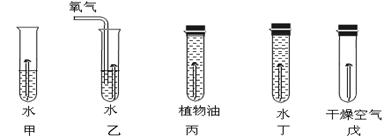 | A.甲、乙中鐵釘生銹快慢的順序為:乙>甲 | B.丙和戊中的鐵釘都不生銹 |
