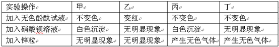 某實驗小組分別對四種溶液進行了一系列實驗,結(jié)果如下表:![]()