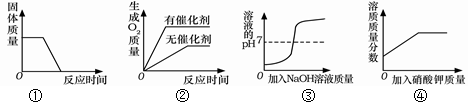 | D.④某溫度下,向一定量飽和硝酸鉀溶液中加入硝酸鉀晶體 |