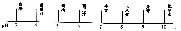 張偉同學(xué)學(xué)習(xí)了溶液酸堿度的表示方法—pH值之后,對家中的一些食品及生活用品,進(jìn)行了pH值測定,結(jié)果如下:![]()
