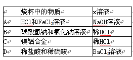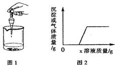 向燒杯中逐滴加入X溶液至過量(圖1),生成沉淀或氣體的質量與加入x溶液的質量關系符合圖2的是![]()