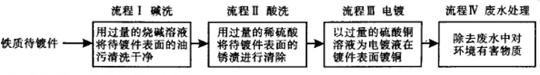 某校課題研究小組到電鍍廠考察,了解到鐵件鍍銅的主要工藝流程如下,:![]()