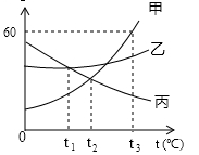 | D.t2℃時(shí),甲、乙、丙三種物質(zhì)飽和溶液的溶質(zhì)質(zhì)量分?jǐn)?shù)相等 |