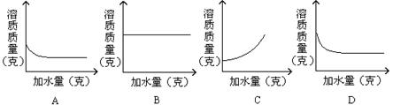 將一定質(zhì)量分?jǐn)?shù)的氯化鈉溶液逐漸加水稀釋?zhuān)铝袌D象符合溶液中溶質(zhì)質(zhì)量變化規(guī)律的是