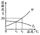 | D.t2℃時,甲、乙兩物質各20 g可分別完全溶解在100 g水中 |