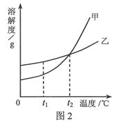 根據(jù)圖2所示的溶解度曲線判斷,下列說(shuō)法正確的是( )![]()