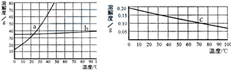 | C.20℃時(shí),a、b、c的溶液中,溶質(zhì)的質(zhì)量分?jǐn)?shù)由大到小的順序?yàn)閎>a>c |