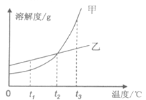 | A.在t2℃時(shí),甲、乙兩種物質(zhì)的溶解度相等 |