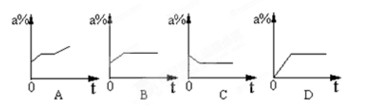 一定質(zhì)量的硝酸鉀不飽和溶液,恒溫蒸發(fā)水分直到有少量晶體析出。在此過程中,溶質(zhì)的質(zhì)量分?jǐn)?shù)(a%)與時間(t)的變化關(guān)系,下列圖示正確的是![]()