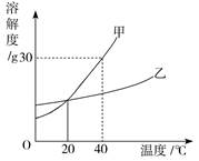 | C.40 ℃時(shí),70 g水最多可溶解乙30 g |