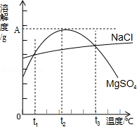 | B.t1℃~t3℃,MgSO4的溶解度隨溫度升高而增大 |
